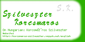 The Szilveszter name frequency in Hungary: The name is in TOP Eigthy-Six most common man name in Hungary. As 1.st name: 0.0454% (Four Thousand Five Hundred and Thirty-Six), as 2nd name: 0.0183% (One Thousand Eight Hundred and Twenty-Eight) man have this name.. Korcsmaros surname frequency: 25